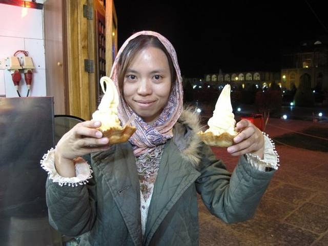 捧着雪糕继续在巴扎里闲逛,当地人见到我们依然非常热情地打着招呼,一群人经过,和我们SAY HI的时候,我也随口和其中那位女孩子说了句:“HI,你真漂亮”,没想到,居然把这位女孩高兴坏了,拉着我蹦蹦跳跳地问:“真的吗?真的吗?”,还和周围那群男伴说:“你们看,她都说我漂亮!”然后,硬是拉着我要和我合影……晕啊,有时候,伊朗人的开放和热情真让人有点招架不住呢。
