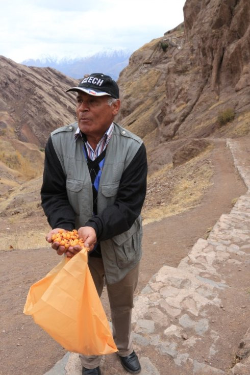 来到半山腰的平地休息,ALI变戏法般拿出一袋野果给我们吃,从来没有看到过这样的果子,很惊喜地尝试了一些,味道很特别,虽然个人不是很喜欢,但是对一个吃货来说,没吃过的东西一定要尝尝,何况这是在伊朗深山里的野果。