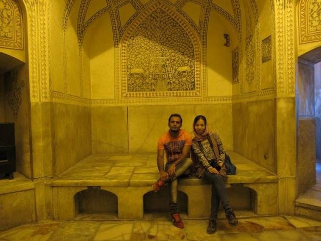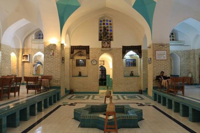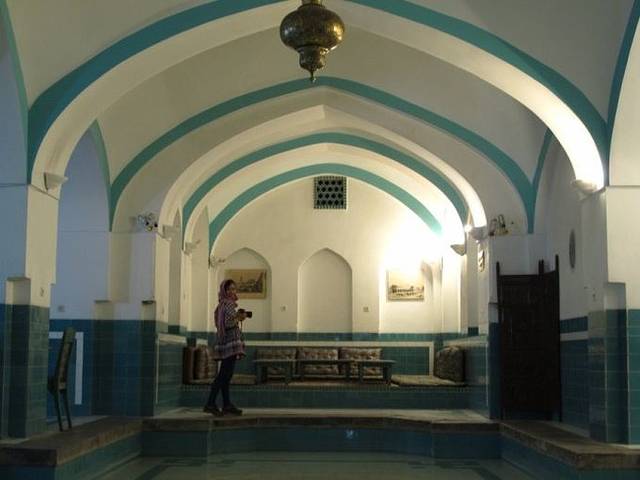我们先是包了这间传统温泉浴室,对于包场来说,不算贵了,大概10美金的样子,可是,那水真的好烫!鸡蛋都能煮熟!让我们怎么泡!依依不舍地放弃掉这间传统浴室,换到旁边另一个房间,但不是传统式样的了,里面有两个温泉池,一大一小。同伴和ALI在大池子里泡,这种普通的温泉池可就吸引不了我那么麻烦地去换衣服了,就只在小温泉里泡泡脚。没多久,同伴还是大呼受不了,还是太热,头晕眼花了,但ALI则是一副很享受的样子,说水温刚刚好,还不断安慰同伴“没关系,慢慢地,就习惯了”,好吧,我们只能说,伊朗人实在太猛了!