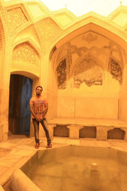 刚开始,因为没有带泳衣,我还有点犹豫要不要泡,想象中在雪山下泡温泉似乎很不错,而且能在伊朗的深山里泡个温泉也是非常难得的体验,可又觉得要换衣服好麻烦……但当ALI把我们带到这样一个有着500年历史的传统浴室时,我不再犹豫了!太有特色了!而且绝对是纯天然的地热温泉,空气中弥漫着一股浓浓的硫磺味,绝对不是那些建筑奢华,却用锅炉烧开水冒充温泉的所谓“温泉度假村”能比的。