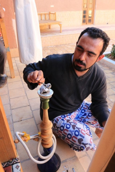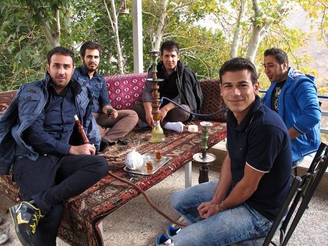 旁边还有一家水烟馆,里面挤满了伊朗男人,都在抽着水烟聊天,其实他们也很会享受生活。看到我们的大镜头伸进店里,男人们都抬起头,似乎也对我们很好奇,非但没有不快,反而很友好地对我们抱以微笑。