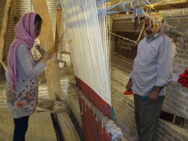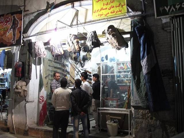 见到飞行员以后,他带路进了巴扎去取他之前买的那副地毯。原来卖地毯有个专门的区域,里面非常大,商铺一家挨着一家的。我们找了很久都没有找到飞行员说的那家店,开始我们以为他只是看中了那里的一块地毯,没想到他说钱已经付了,而且没有任何的凭证,手上只拿着那家店的名片……我们都被吓了一跳,我心里暗想:“坏了,东西没拿怎么就付全款了呢?这几千块钱估计冻过水了。”拿着名片一路问小商铺的老板,大家都很热心,但似乎也都搞不清具体的位置,在不同人的指引下,我们兜了好几个圈,经过一场艰难的“寻人接力”后,终于找到了那个店的老板,但不是之前卖东西给飞行员的那个人,带我们去的也不是原来的那家店铺,而是位于楼上的一个地毯仓库。如果是在国内遇到这样的情况,我是绝对不会抱任何希望的,但是神奇的伊朗没有让我们失望,飞行员很顺利地拿到了他那张一个星期以前付过费的地毯,没有任何单据,全凭一个“信”字。