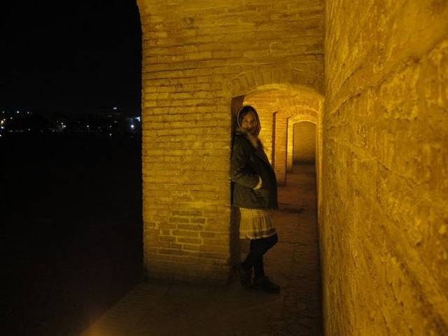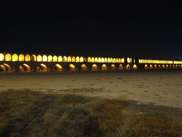 夜晚走在33孔桥上的感觉非常温馨和浪漫,一对对情侣在桥上走过,俊男美女相当养眼;三三两两的伊朗人聚集在桥上的灯边喝茶聊天。没有太多现代化娱乐设施的日子,人与人之间显然更加亲近。