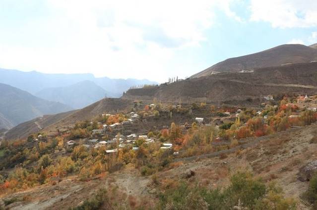 越靠近温泉村庄,秋色越发浓郁。远处山谷里和近处道路旁的小村庄,五颜六色散落的民居被秋林掩映着,如油画般浓墨重彩,我们都看呆了,完全没想过伊朗黑色的面纱下隐藏着这样彩色的灿烂。
