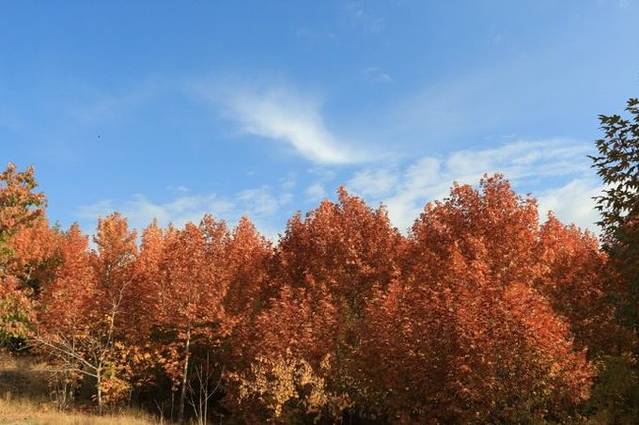 接近阿拉穆特城堡的时候,我们已经来到了山脚,从一片火红的树林穿过,通过ALI的介绍,我们这才知道,原来一路上这些火红的树木都是樱桃树!可以想象,若是在樱桃成熟的季节来到这里,会有多诱人!