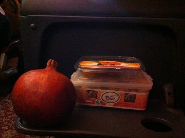 上海飞往德黑兰。第一次接触到伊朗人,颇为欢乐。先是中伊抢位大战。航班是2-4-2的座位排列,没有坐满,我们看中了后排无人的连续4个空位,准备一起飞就去抢,于是频频回头,突然发现气氛有点不对劲,周围的伊朗人似乎也在虎视眈眈,大家互相对望,心照不宣,我差点忍不住笑出声来。等到扣上安全带指示灯一灭,同伴马上走到后排去占位,结果发现那些连续四座空位的地方,早已有人放了行李在那里霸位!碰上高手了!结果我们都只能勉强每人占了两个靠近窗户的位置蜷缩着睡觉。