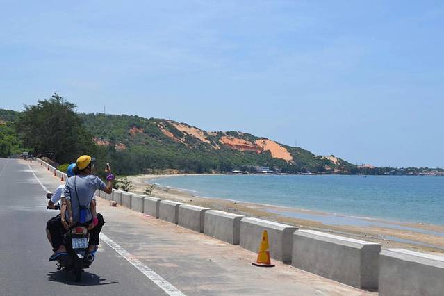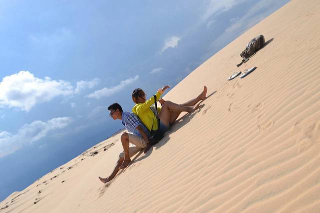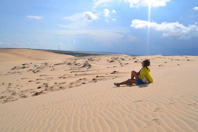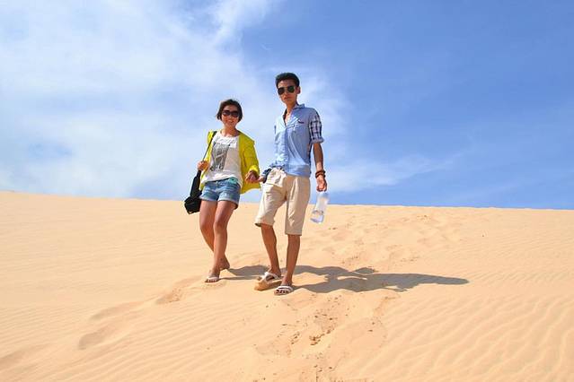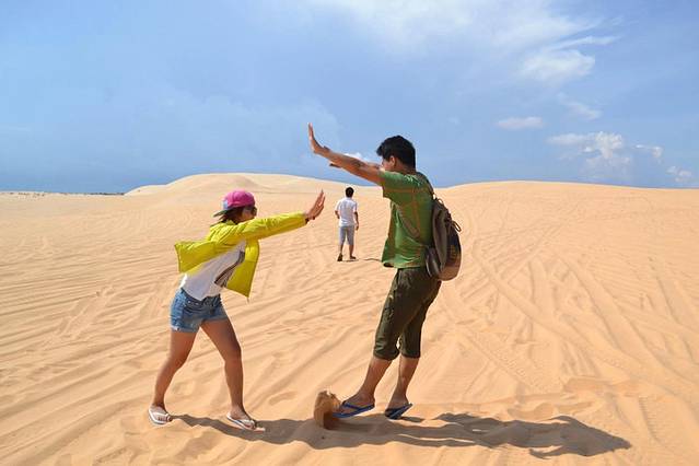 让我印象最深的,不是美奈的海而是白沙丘的沙,从美奈租个摩托10万盾一天,30多人民币。海洋,沙漠,草原,都是让人感觉渺小的地方。看远处的小车,像不像玩具。虽然很热但我们玩的还是很开心,也晒黑了不少,皮肤已经发红了。