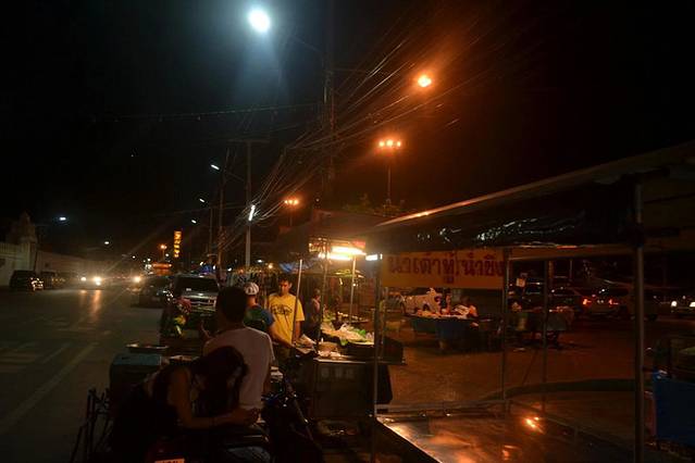 住在火车站附近的我们坐嘟嘟车拉我们去夜市,到地方瞬间感觉对不起车费,短短一条街,连清迈四分之一的繁华都没有