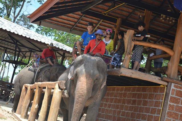我们一行人体验了骑大象一小时,从1300还到了700一人,感觉大象们很可怜,不管来多少客人他们都要周而复始的工作或许至死他们都是供游客享乐了,而且还要遭到工作人员的锤打,命运何其悲哀。骑行过程中,土豆的拖鞋还掉地上了,通灵的大象很乖的把拖鞋用鼻子卷起来给递象背上了,看的我们鼻子酸酸的,保证再也不骑大象了。