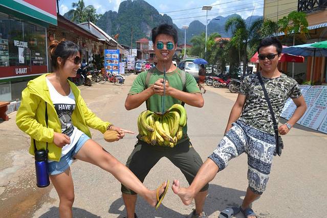 老挝,第一次吃到3元人民币一大排香蕉;第一次漂流迷路且遇到水蛇;