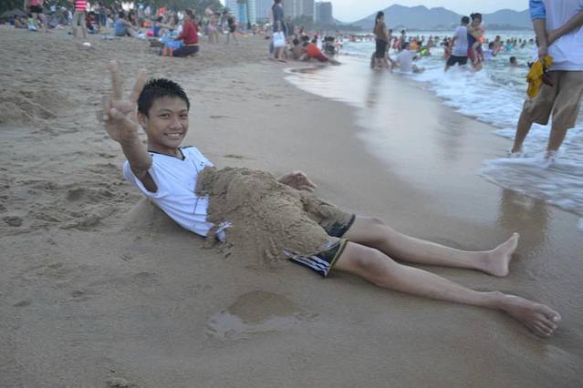 芽庄的海滩很干净,可以开心的游泳嬉戏,堆沙打闹。这里更是小孩子的乐园,虽然很晒,但心情很棒。我们正青春,我们在路上。