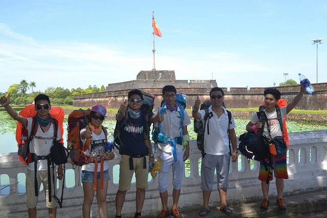 28日,到达顺化。继续和在河内认识的一对情侣结伴出行。小蒋和小毛,因为姓氏特别,被我们笑称"蒋毛"。两人英语口语比自己好太多太多,旅店住宿,吃饭,景点都是他们两个冲锋在前,小蒋更是砍价能手,昨天能把车票从45坎到36就可见功力不一般。