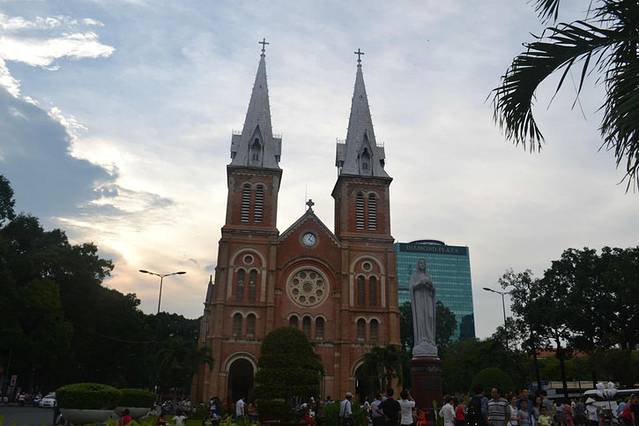 因为越南曾是法国的殖民地,所以这里的法式风格的建筑很多,教堂也不少。这种法式的建筑与原始的越南小巷有些不协调,反差很大。