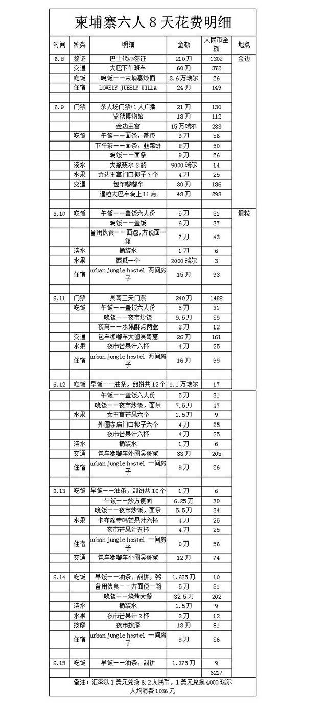 6月10日,去暹粒我们自己找的巴士8刀一个人,酒店报价12刀,穷游就得靠自己,省钱更是硬道理。
