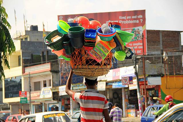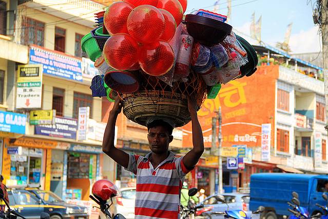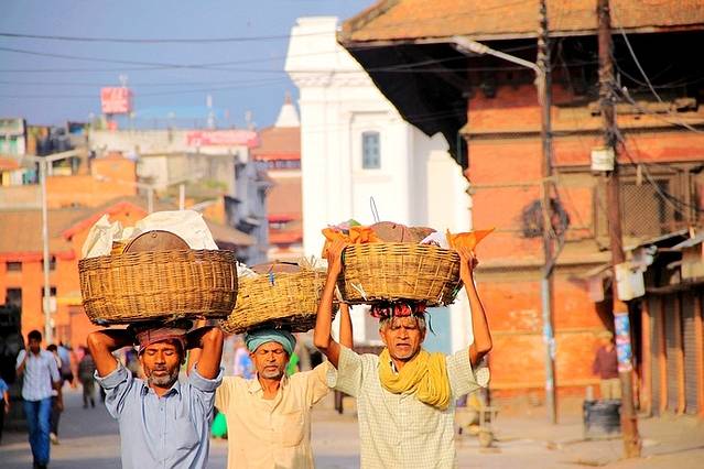 说实话,如果不是我自己拍的照片,我会以后这是非洲的某个国家,因为在我的脑海里,用头顶东西是非洲人的事情,没想到在尼泊尔也是如此。