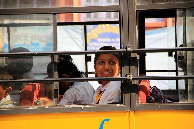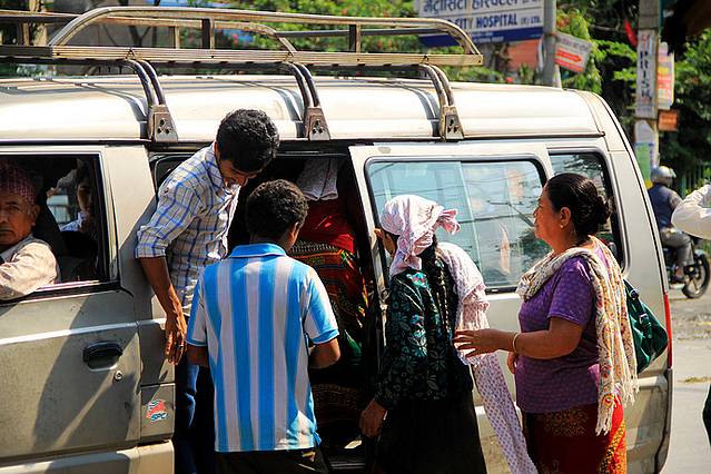 相对比尼泊尔的校车,尼泊尔街头的客车就没那么幸福的,极度的破旧,而且是能装多少是多少。