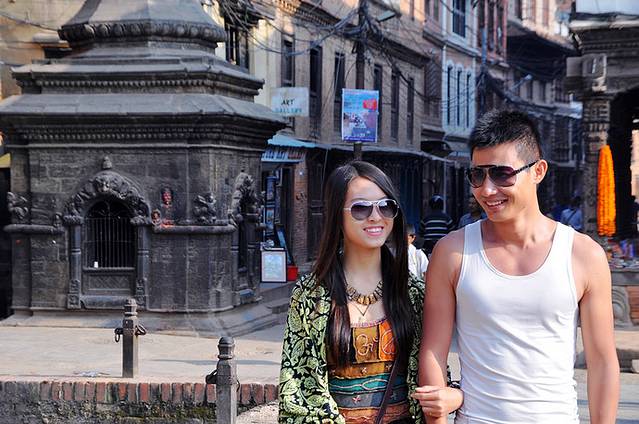 在尼泊尔语中,“杜巴”是皇宫的意思,“杜巴广场”就是皇宫广场。古代尼泊尔国王喜欢在皇宫前设置开阔地,君权神授嘛,就在皇宫附近修建庙宇。后来,历代国王越建越多,越建越大,广场则变得越来越狭窄。而如今,这里也是加德满都最热闹的地方,每天这里都会聚集很多很多的人群,无所事事的、讨生活的、乞讨的、参拜的、商贩、学生、游人,络绎不绝。