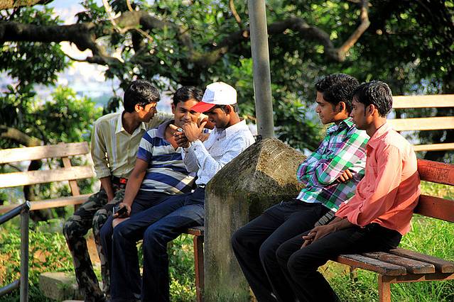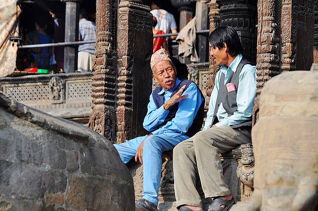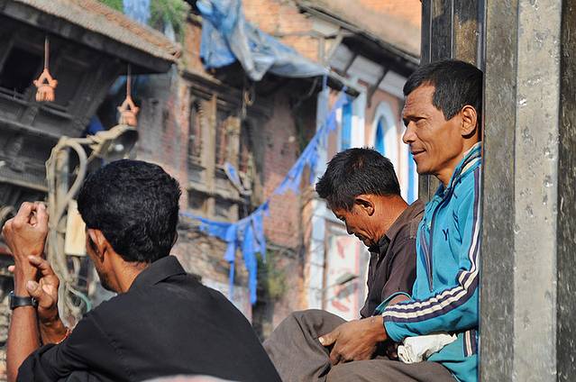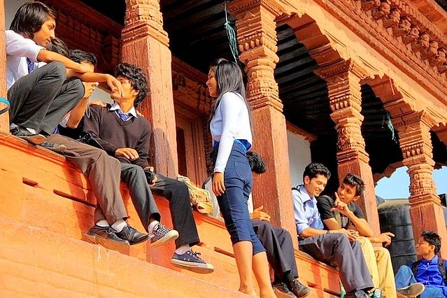 一群无所事事的尼泊尔年轻人坐在半山腰,饶有兴趣的打发无聊时光,作为一个劳动力极度过剩的国度,这样的画面可以说到处都是。