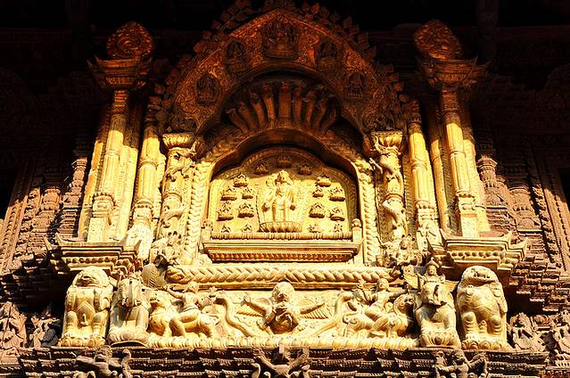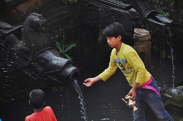 传说来自远处的戈萨因孔达冰湖,被视为圣水,市民常来沐浴,以求圣洁。贾亚斯提提国王下令在寺旁水槽边和寺内庭院中,建立那罗衍、象头神等神像多尊。城中心的鲁德拉.瓦纳佛寺,其佛像及四周的菩萨像均为铜制艺术珍品,寺中还有多尊铜像、石像和布满图饰的佛坛等,人入庙中,如入艺术库藏。