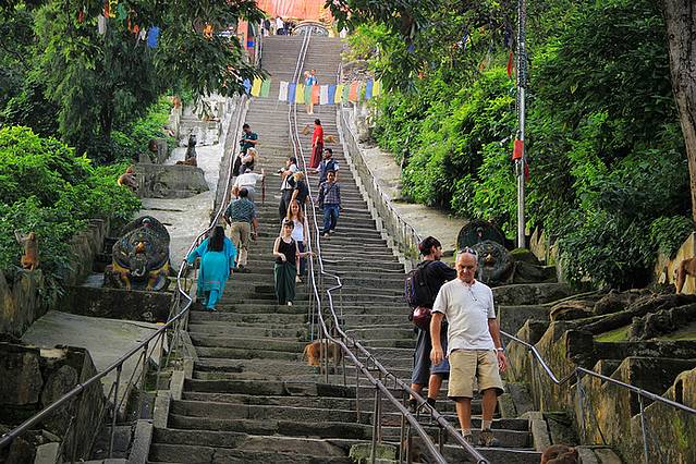 猴庙坐落于尼泊尔首都加德满都西郊两公里处的一小山丘上。据说坐拥至高点,可以俯瞰整个加德满都城,绝美的观景台,当然前提是你先一步一个台阶的爬到山顶。