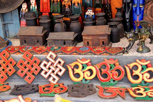 尼泊尔兜售的手工艺品种类繁多,包括有雕刻雕塑、绘画、陶器、地毯与针织品纺织品、首饰、珠宝及珐琅制品、皮革制品、佛教法器及装饰品等等,应有尽有。