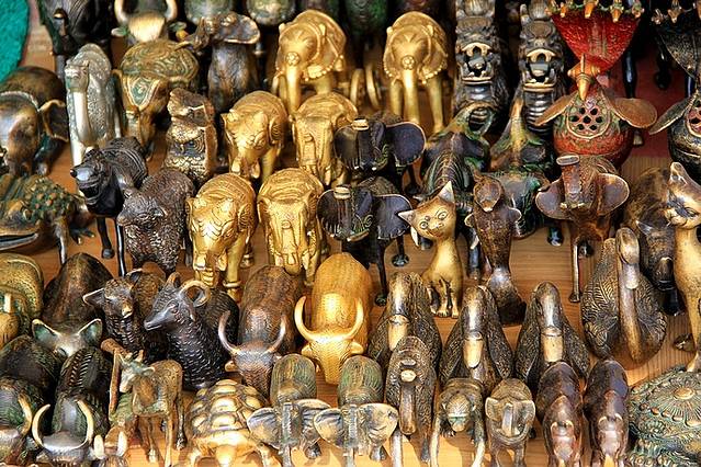 各式各样的雕塑品,以大象与猴子最多,可见这两者动物在这个国度文化里的重要性。