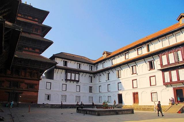 哈努曼多卡宫,又称猴神庙(Hanuman Dhoka) ,已有数百年历史,始建于13世纪前的李查维王朝。自15世纪末起,成为加德满都历代马拉国王的正式官邸。1768年,沙阿国王攻陷加德满都并统一尼泊尔后,又一直成为沙阿王朝的王宫。