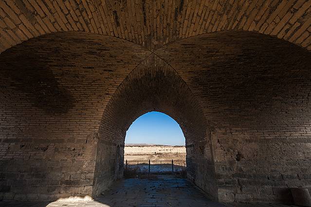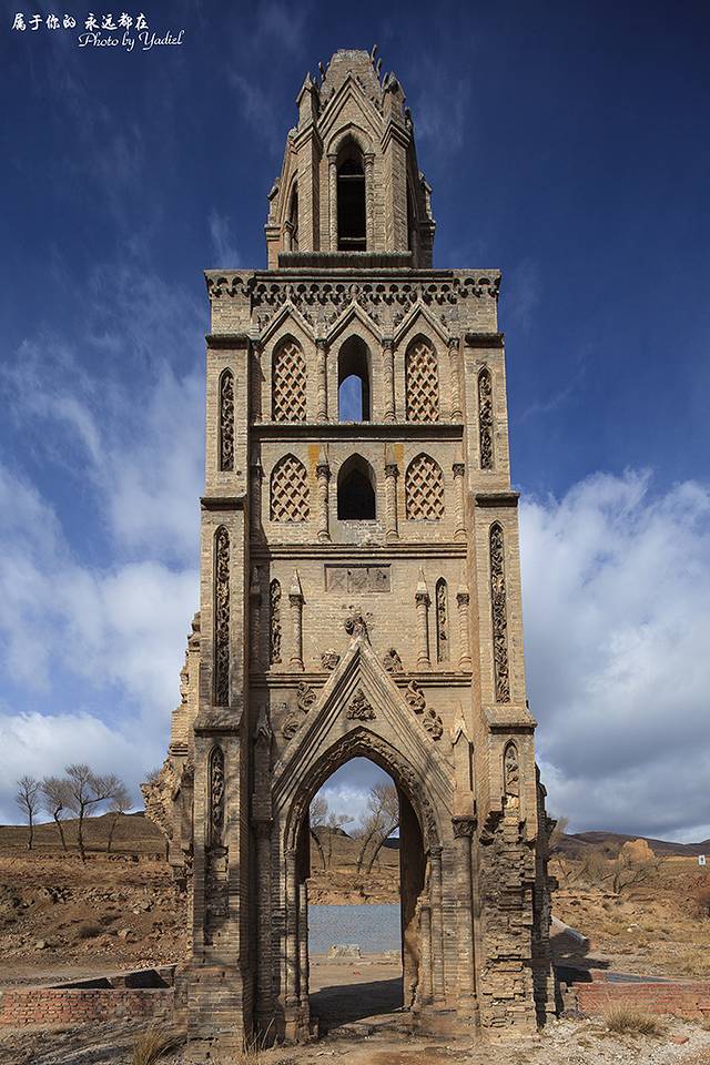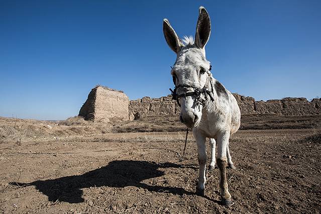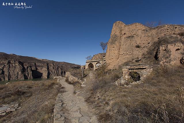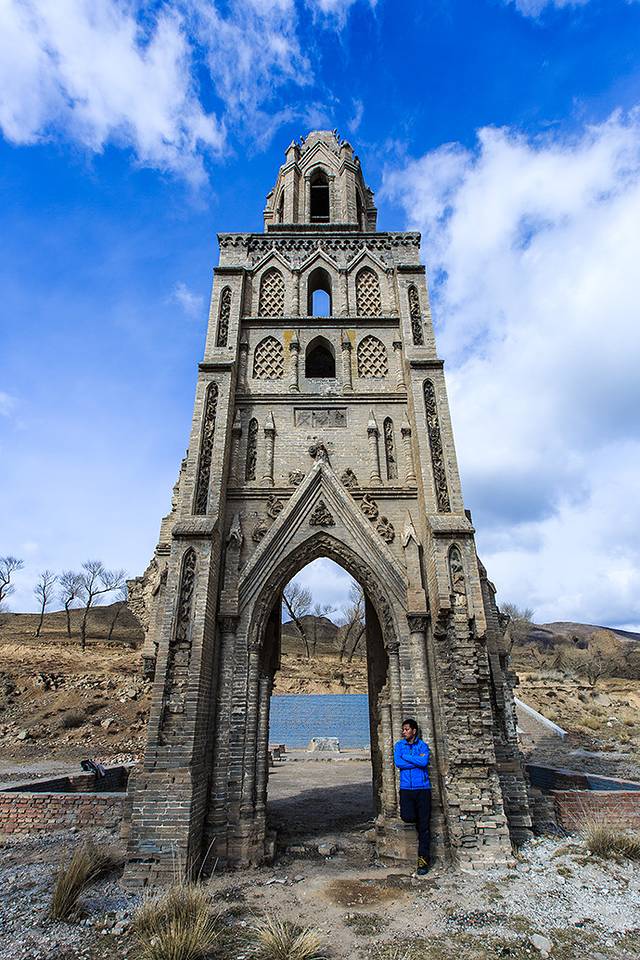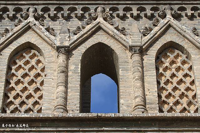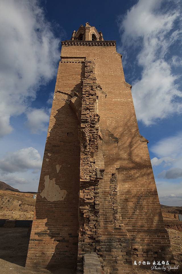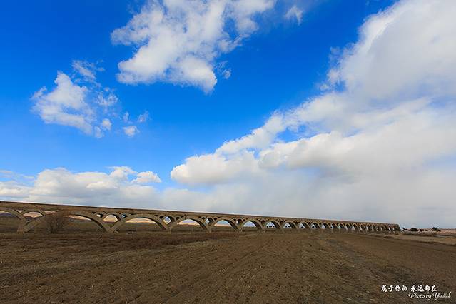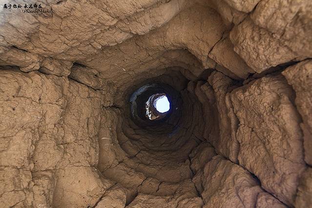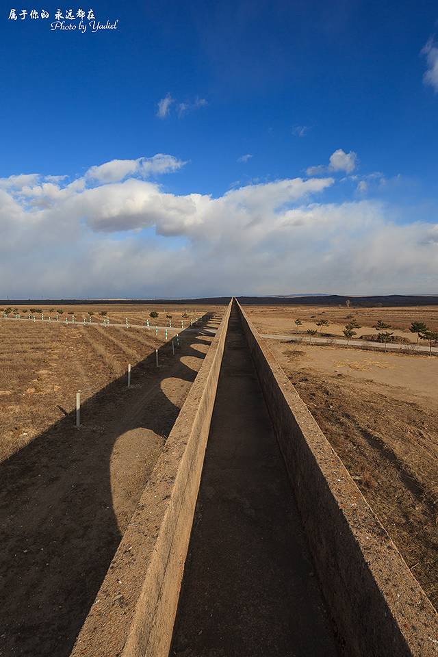 路南则是另外一个村子,名教威鲁堡,同样有着残缺的城墙和炮楼。村子东侧有一条很长的高架引水渠。蓝天白云艳阳下,我实在忍不住要来张“装逼照”,站在引水渠上,感觉自己就在“世界的尽头”。