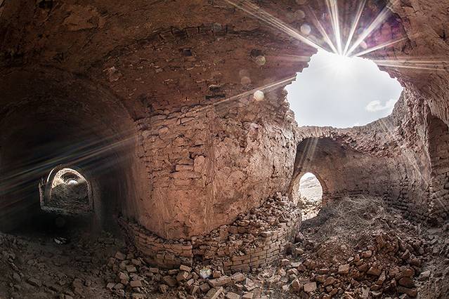 一行人到达宁鲁村附近,意外地发现一个类似窑洞的建筑,四四方方的土堆,整齐匀称,四周都有拱形入口。里面则是一个首尾相连的方形通道,内侧都是砖体,还有数十个小的采光口。置身其中,尽管能听到外面的北风呼啸,却感受不到一的丝凉意。大家猜猜这个建筑的用途是什么?