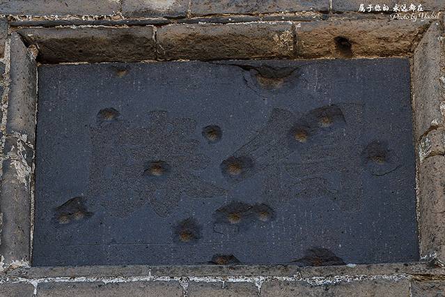 月华池的造型像一张“弓”,东、南、西三面是一道弧形城墙,像弓背;正北的墙则是笔直的,却像这张弓的“弦”。南墙下只有一个独门,拱券上方,有一块嵌入城墙的石匾,上刻斗大三字“月华池”,字体苍劲有力,现石匾已剥落丢失。