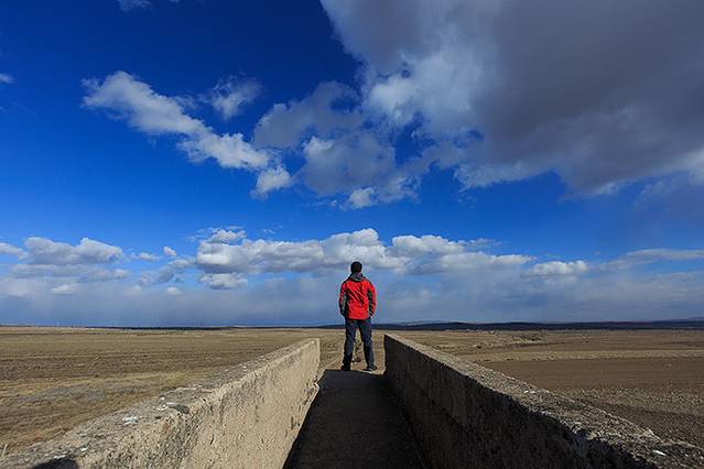 站在引水渠上,仰望着蓝天白云,仿佛世界就在我下。