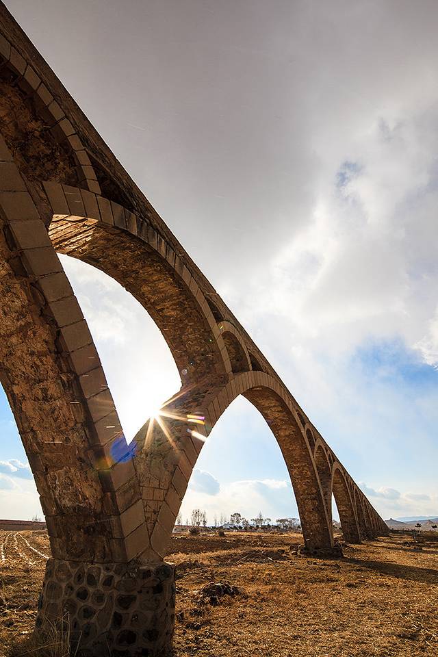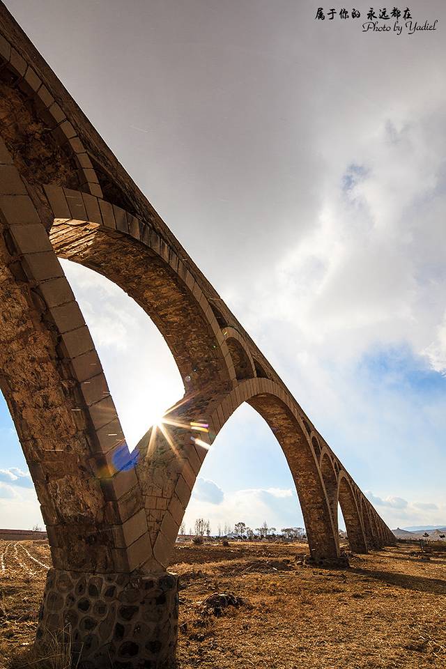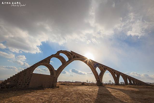 进入村口,最引人注目的,是那条笔直狭长而高大威武的引水渠。一个个拱形的桥洞前后相接,共同筑起了这条高约5米的引水渠。