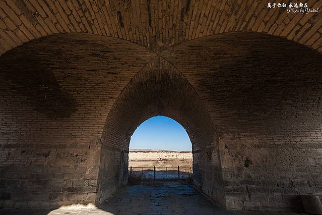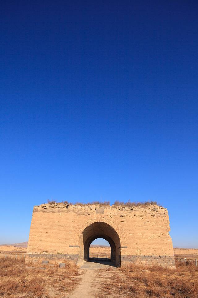 得胜堡内北侧有一座砖结构的关口,外形方正规矩,四面各有一个拱形入口,门洞的八根线条向里纵深,慢慢变成曲线并相交于关口的中心点,保证了坚固性的同时,还不失美观。