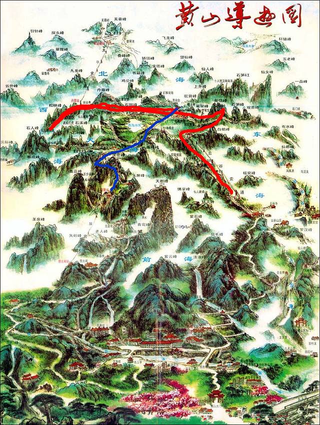 根据老板的推荐,我们研究出了这两天的路线图,两天将黄山景区最最精华的景点一网打尽。
