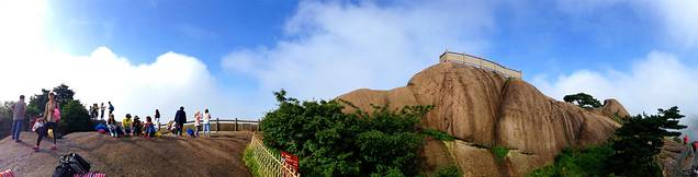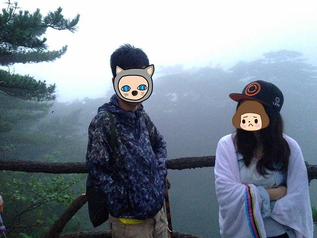 凌晨四点准时被室友的呼噜声吵醒,伴着“动人的旋律”洗漱完毕就摸黑往清凉台方向走去。黄山看日出最佳观测点:丹霞峰、狮子峰、清凉台、光明顶。而清凉台是离我们酒店最近的观测点,到了清凉台大约4点45分了,预报说今天日出时间是5点20分。天色渐渐亮了,可惜雾气越来越大,没有消散的意思,由于没有带厚衣服,我被冻得直哆嗦。小小的清凉台里三层外三层挤满了人,大家都很失望,起早贪黑什么都没看见,等到五点半下起小雨点后,大家才黯然离开。固然有遗憾,但是就留给下一次到访黄山再弥补吧!听说要长时间住在黄山才能看到黄山日出的真容。运气十分重要,今天看来注定与黄山日出无缘。