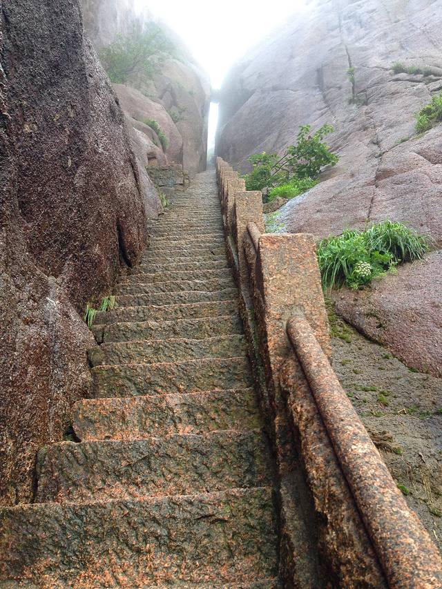 第二天早上看完日出游览光明顶、一线天、百步云梯等景点,然后到第二天的重头戏登天都峰,然后看完迎客松后坐玉屏索道下山。