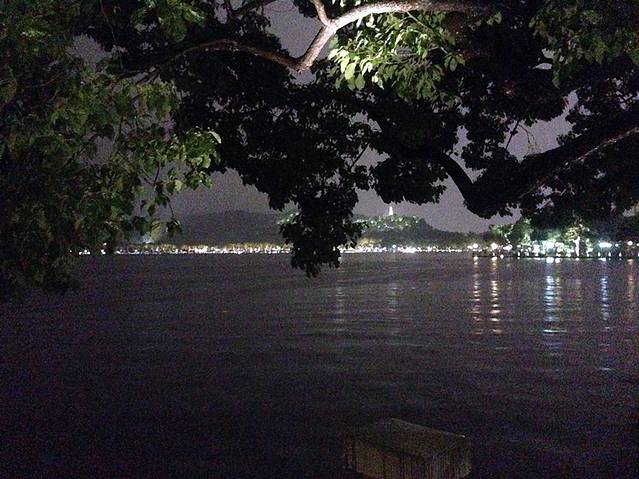心满意足的一顿晚餐后,我们仨决定去之前司机推荐的上江埠大桥一览千岛湖美景。我们又叫了一辆专车,这次这位司机本职工作是在千岛湖开游艇的,他也很热情的把我们送到了目的地,然后把车停在桥上,等我们欣赏完风景再送我们回酒店,真的是中国好司机!!给他32赞!!!