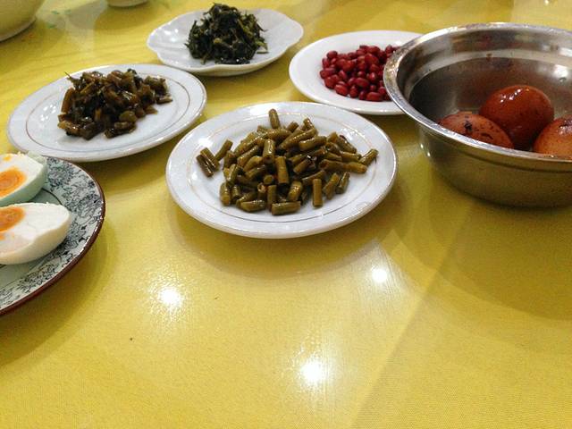 酒店早餐一人10元,比较简单,稀饭、咸菜、咸蛋、茶叶蛋、馒头等菜式,多吃几个馒头登山就不会那么快饿肚子了。