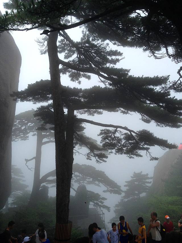 走了一段路终于到了黄山最著名的景点——迎客松,也是人最多的景点。一拨又一拨的旅行团,破坏了我观景的兴致。很多游客在迎客松前拍照留念,不过本人对此不大感冒。个人感觉没有西海大峡谷的松树好看。