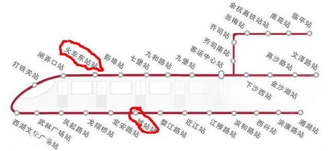 杭州东站搭乘地铁1号线至城站站,即杭州火车站。