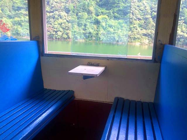 班船有点破旧,一共有两层。由于比较冷门的路线,乘客比较少。发船时间刚好是吃午饭时间,就提前在千岛湖采购了干粮。不过船上有提供午餐,也是千岛湖鱼头等炒菜,三菜一汤一百来块,似乎也不算贵。不过居然连开水也要收钱,泡碗面要收三块钱!