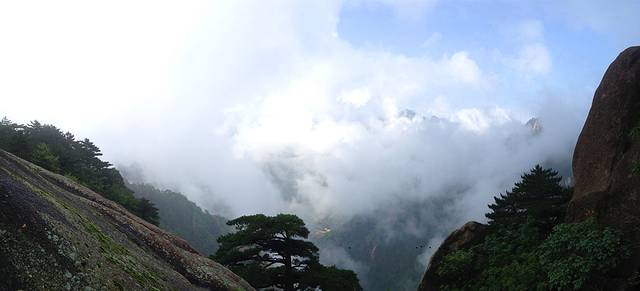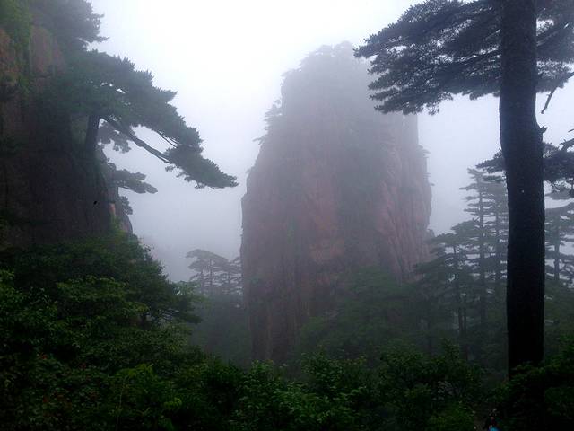 爬上一块陡峭岩石,视野瞬间开阔起来,终于真正体会到了“无限风光在险峰“的真理!云雾随着风云卷云舒,黄山呈现着千变万化的绝妙景致,看到她的每一面都足以让人心醉。仙气弥漫着黄山遍野。此情此景让人有如置身于仙境,使人坚信云雾笼罩的山峰里定是住着神仙。雾气朦胧、奇松林立的始信峰也汇聚了接引松、龙爪松、卧龙松、探海松等许多黄山名松。