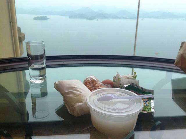 酒店的早餐很简单,单独售卖的话一份15元,需要亲自到5楼前台领取。但是味道不错,一个袋子里装有稀饭,包子,鸡蛋,榨菜,油条等小食。坐在观景阳台,一边品尝美餐,一边欣赏美景,这是何等惬意啊!