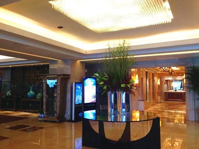 作为一家标准四星级酒店,不论是外观还是内部装潢都达到一定水准。大门口立着四根大石柱,略显气势,通过旋转门进入酒店大堂,由于阴天,光线有点昏暗,大堂层高不是很高,但是看装潢还是相当气派,酒店大堂面积也比较大,不过看设施设备还是有点年头了,有些略显陈旧。
