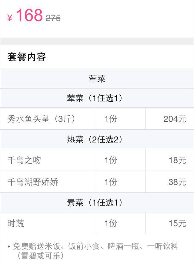 听说千岛湖的鱼头很出名,所以一定要去品尝。我在网上查到千岛湖大排档一条街,而且还在湖边,可以看湖景,在团购网选定了9号大排档的168元套餐,马上叫了专车直奔目的地。