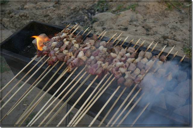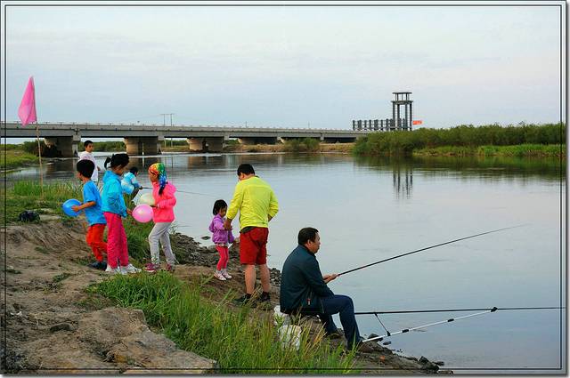 终于到了海拉尔河,河边开了家店,我们今晚就在这吃晚饭,自助烧烤,烤羊肉,铁板牛肉,手扒肉,铁板鱼,煮鱼,玉米面,还可以在河边自己钓鱼,好些小盆友在玩,有些爸爸也在钓鱼,而我又遇到了一只小狗,是店家的,在给小狗拍照的时候店家的儿子和我说了会话,那时候我还以为他也是来玩的。吃饭的时候,由于我用筷子,妈妈们说直接用手吧,那么精致干啥,她们的今天就是我们的明天,我竟然无言以对。