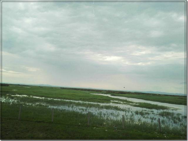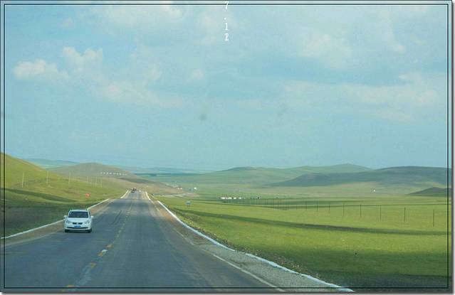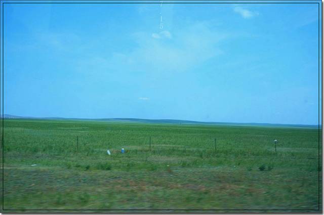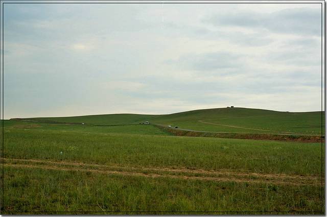 这一路,总算又看到了草原,风景不错,虽然天公不作美,没有蓝天白云,但是一望无际的草原,看着真的心旷神怡。在一处草比较深的地方停下,那儿真的很美,公路从草原里穿过,缓坡直上,隔远望去,车就像行在草原上,真是美到没朋友。