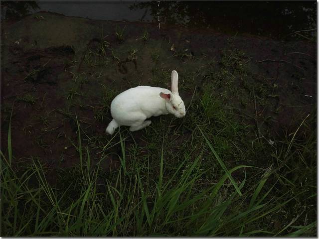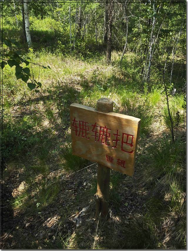 进入敖鲁古雅,最先看到是就是一片森林,然后就是在河边吃草的一点都不怕人的肥胖的白兔,再是一闪而过的松鼠,还有一些三角形的棚子,据说这是以前鄂温克族人住的地方,林子里有一些小卖部,卖着零食还有鹿血做的饼等。森林里铺着木栈道,隔断距离立着藤椅供人休息,还有一些娱乐设施。由于怕时间不够,我们休息一会后就往驯鹿苑走,哪知道,竟然不小心走出景区了,回来的时候售票处的人都认出了我们,o(╯□╰)o