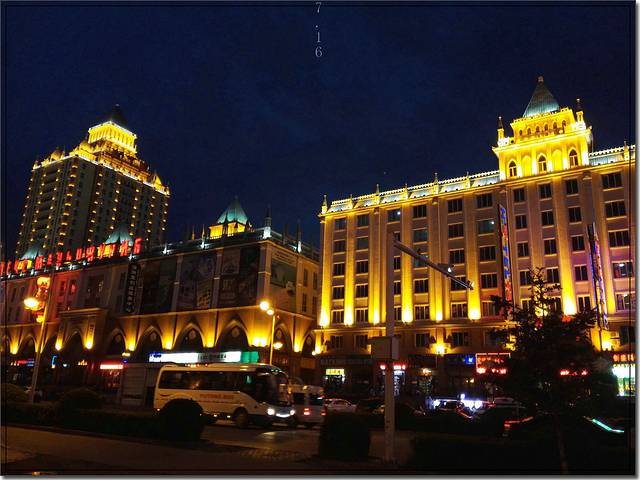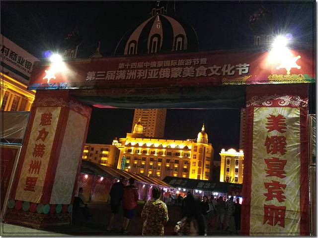 晚上去逛了逛满洲里的夜市。满洲里这的很小,据说只有六道街,不过夜景真的漂亮,和其他城市的夜景不一样,满洲里的夜景虽然也是灯,但都是房子上的灯,暖黄的灯光,镶嵌在整个房子上,西式的建筑,路灯不多,看上去很漂亮。
