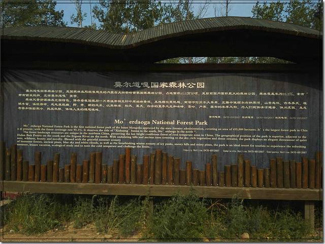 莫尔道嘎国家森林公园,看介绍挺大的,不过门票160也挺贵的,师傅说一般大家都不进去,门票的大部分会分给司机和导游,里面也都是森林,没有特别好看的,我们没进去,就在门口拍了下照片。